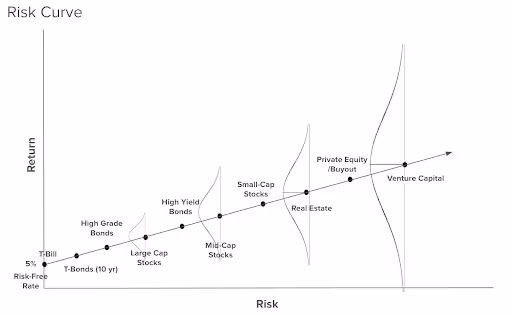 As you move up the risk curve, the potential outcomes start to widen – meaning that you can make more money, but you can also lose more.